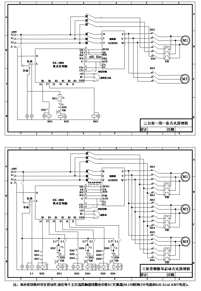 1. 超過11KW的 水泵請用軟起動器或采用自耦降壓,星-三角啟動等方式,線路請參考附圖2,3另行設(shè)計。